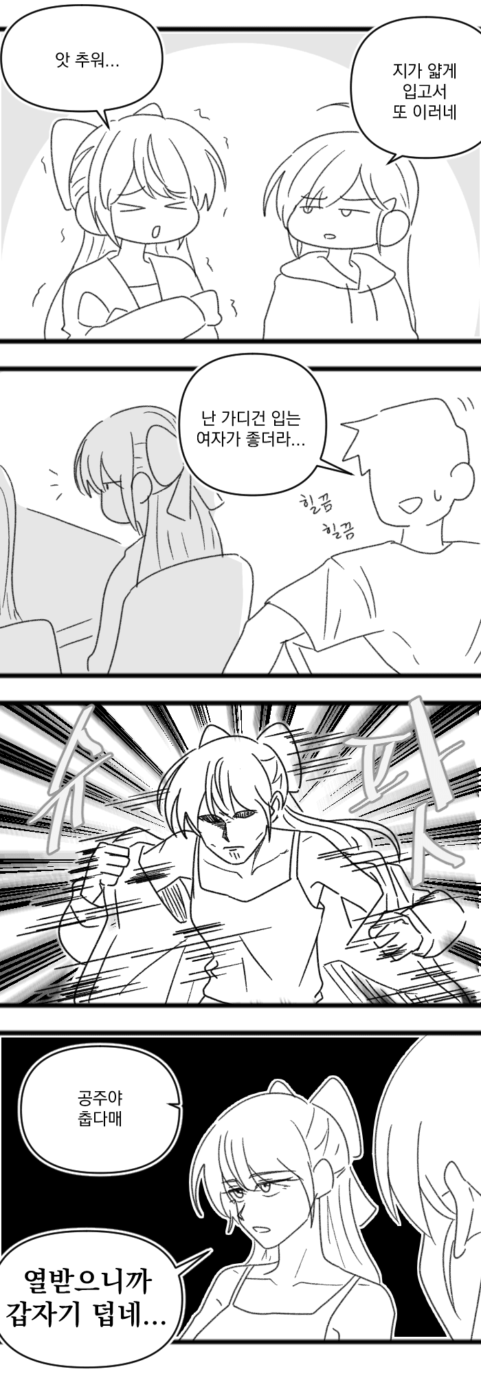 저러면 다시 "난 맨살 드러내 여자가 좋더라~" 말해주면 가불기임 ㅋㅋ