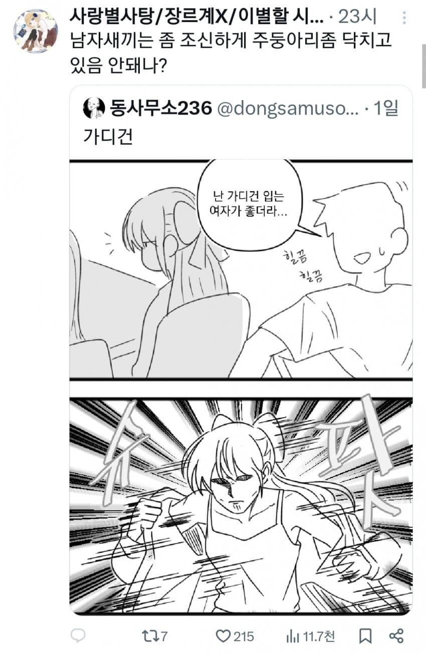 남자들이 안 만나준다고 남자를 까면 쓰나 ㅋㅋ