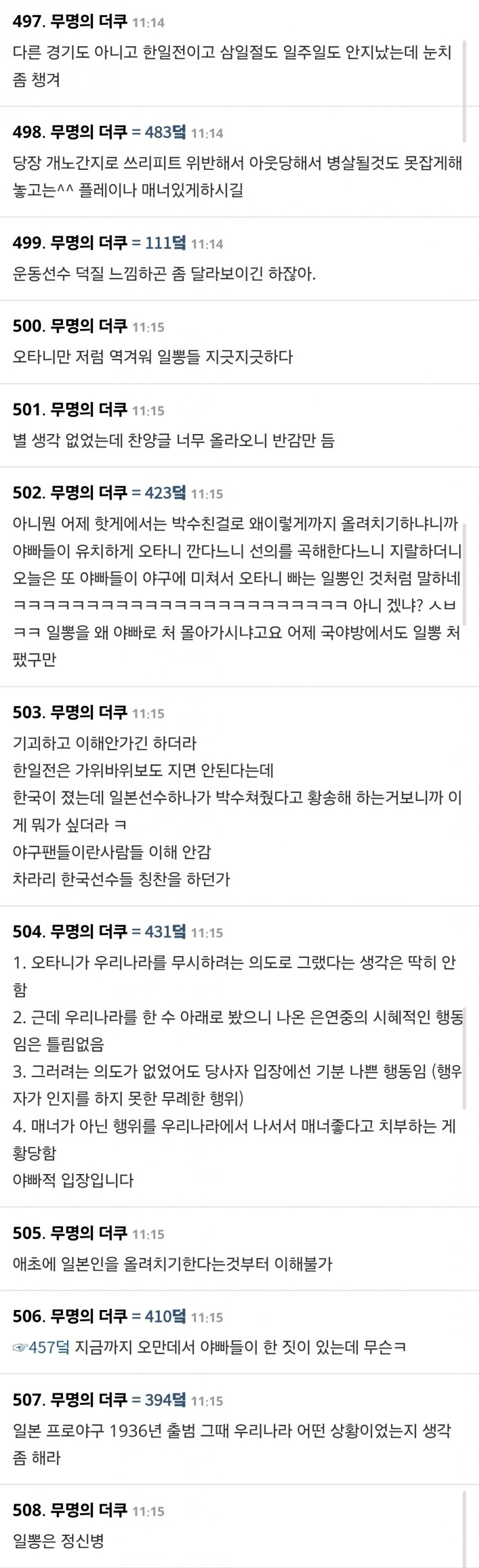 투수할 때 공던지고 상대 타자가 헛스윙하고 넘어졌는데 그거 쳐다봐줬다고 스포츠맨십이 있고 상대를 생각할 줄 알고 뭐 이딴 개억빠하길래 좀 어이없던