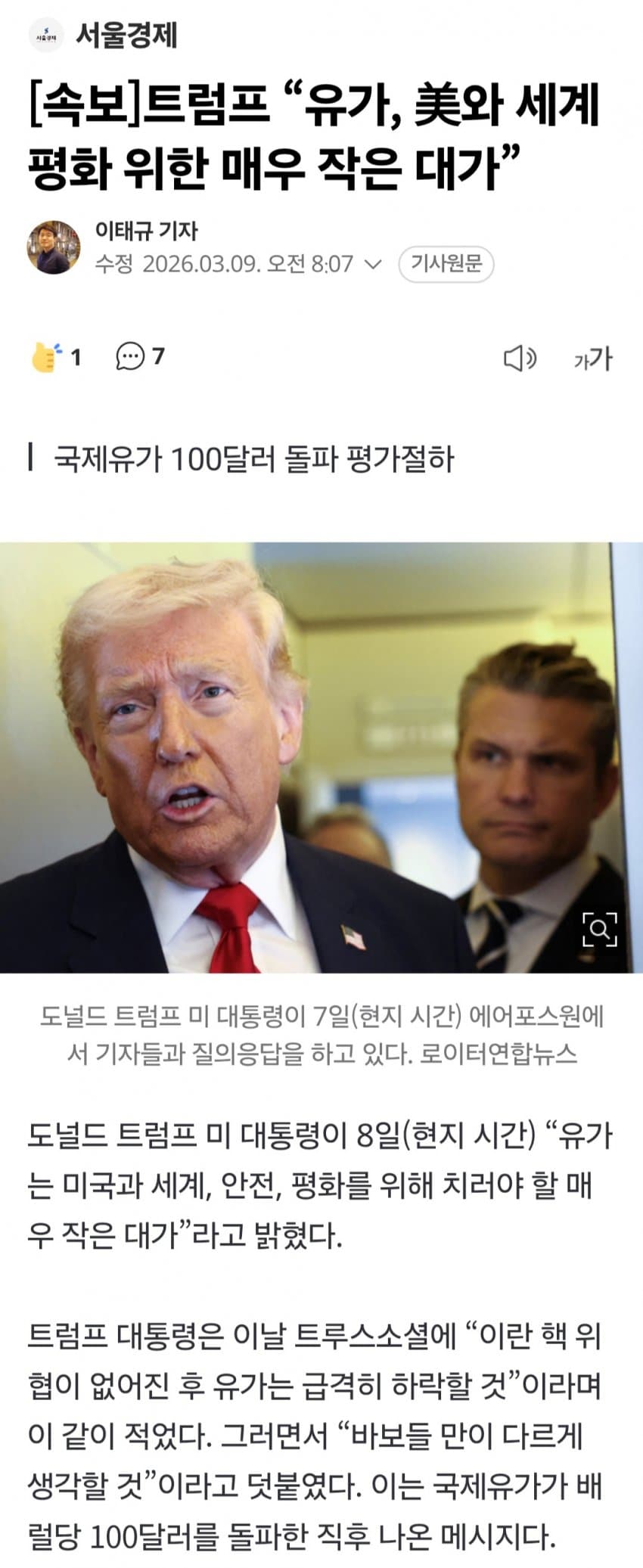 무언가를 얻으려면 무언가를 버려야지. 평화를 위해선 기름 가격정도는 희생하는건 매우싸다. 이 것도 가지고 저 것도 가지려는 것부터는 욕심은 아무것도 못바꿈