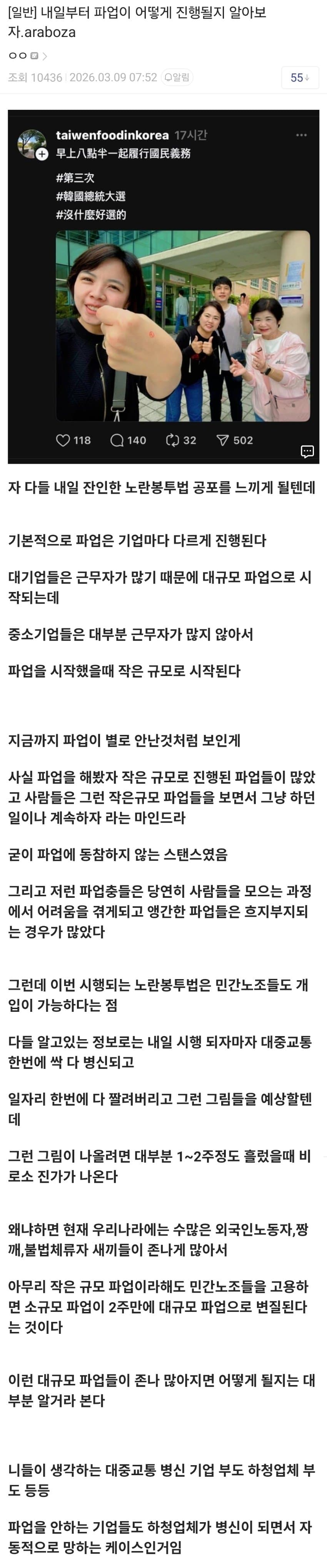 지금도 노조 지랄인데 뭐가 일어날지 찍어먹어야 아냐? ㅋㅋㅋㅋㅋㅋㅋㅋ
