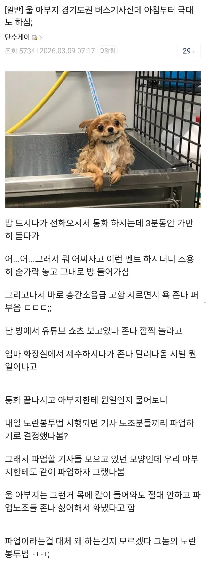 요구 사항이 최소한의 인간다운 삶을 보장하라 같은거면 인정하지근데 요즘 노조는 뭐 보너스 더 달라고 드러눕는데, 이제 그냥 사회악일 뿐임