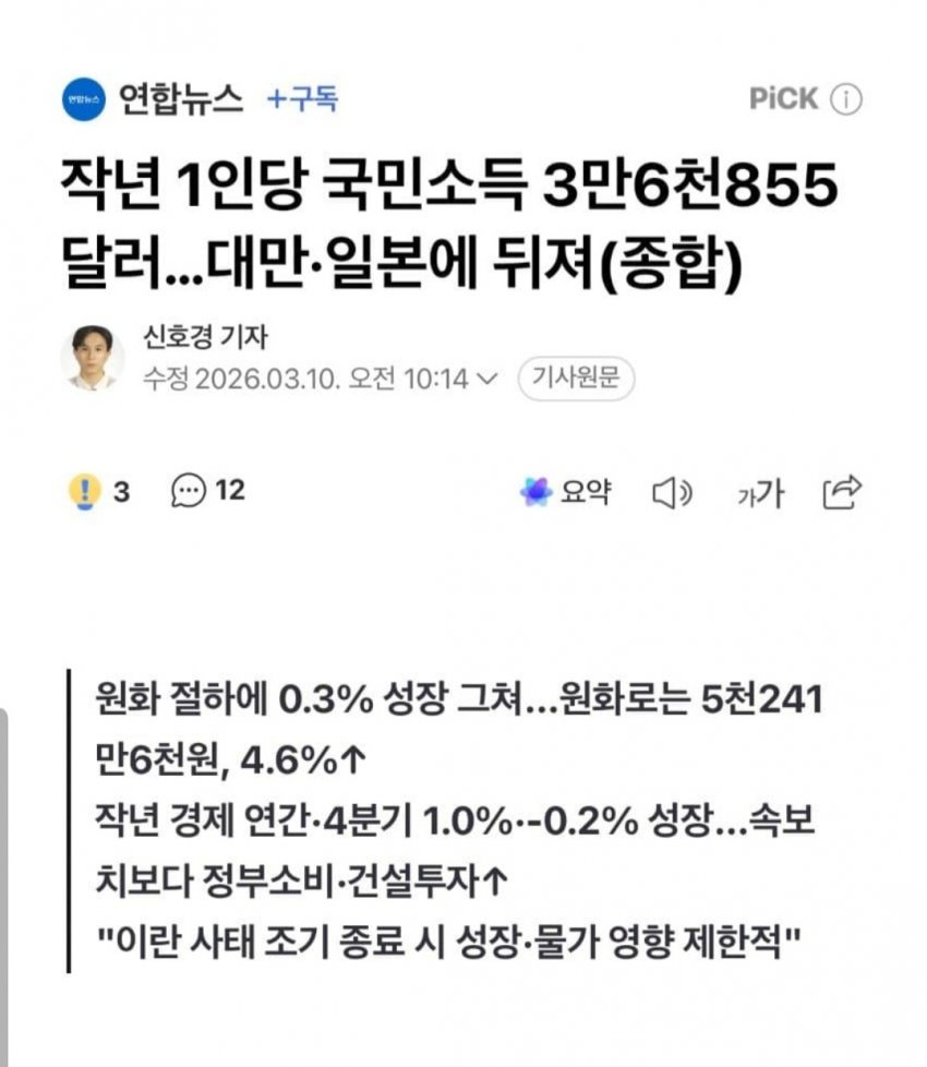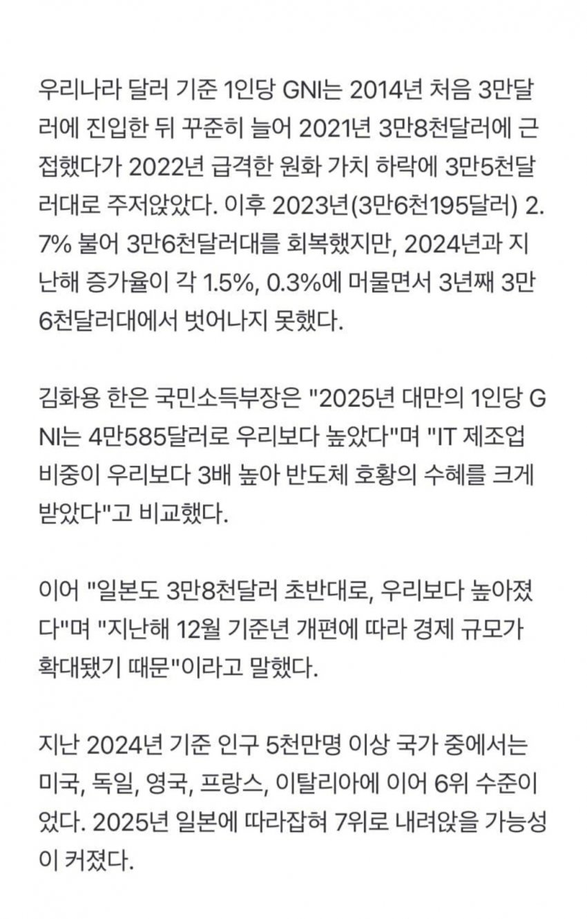 GNI를 교묘하게 GDP로 둔갑시키는 ㅋㅋ 1인당 GDP는 여전히 일본보다 높음 ㅋㅋ왜 이런식으로 교묘히 날조 선동하는지 이해 불가 이러면 밥이 나와 떡이나와?