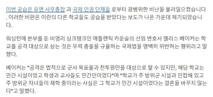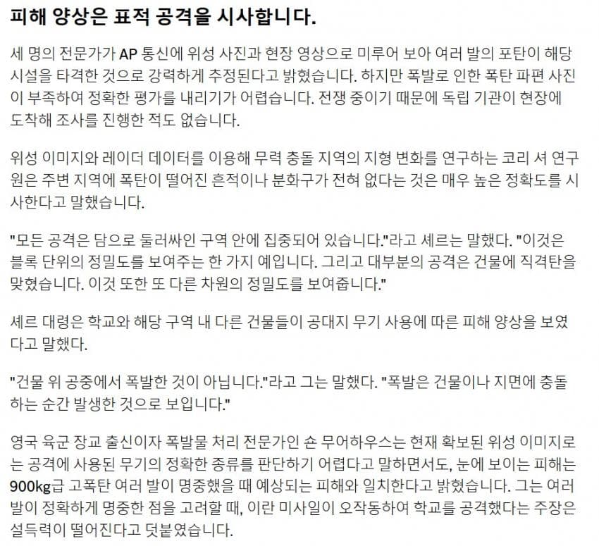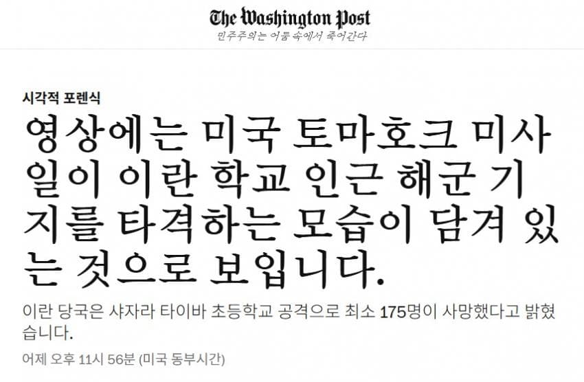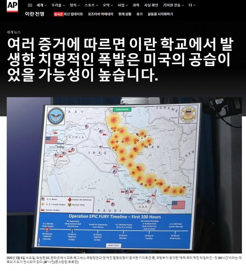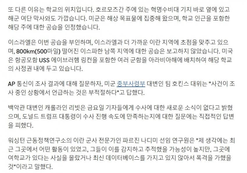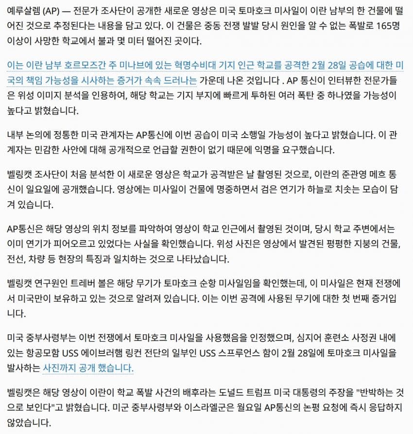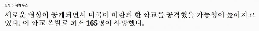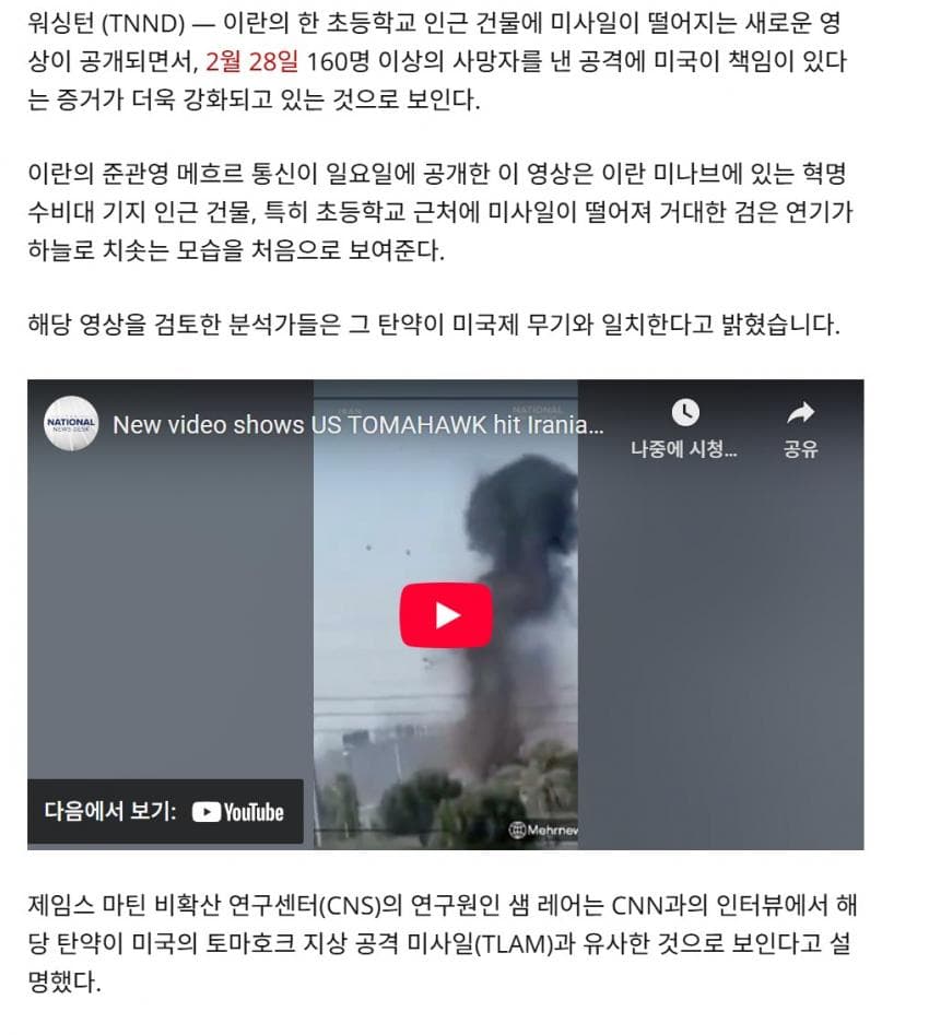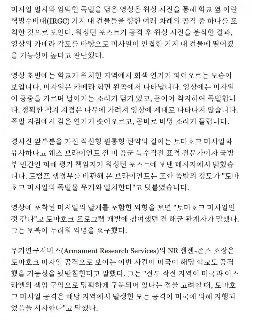 국제 안보학교수 "토마호크로 보인다. 이란제는 아니다. 업데이트 안된 정보 때문에, 초등학생들 170여명 사망"