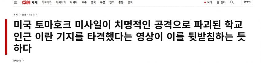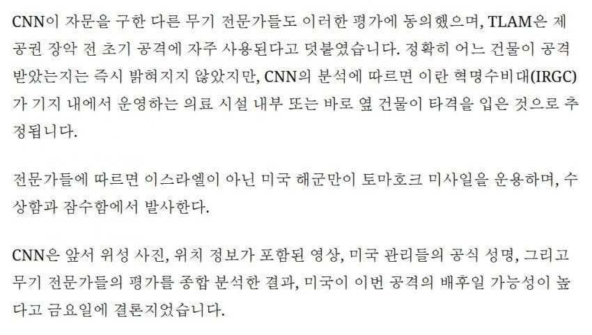 CNN 자문 무기전문가, "토마호크 맞고, 이스라엘은 토마호크 안씀. 미국해군만 씀."