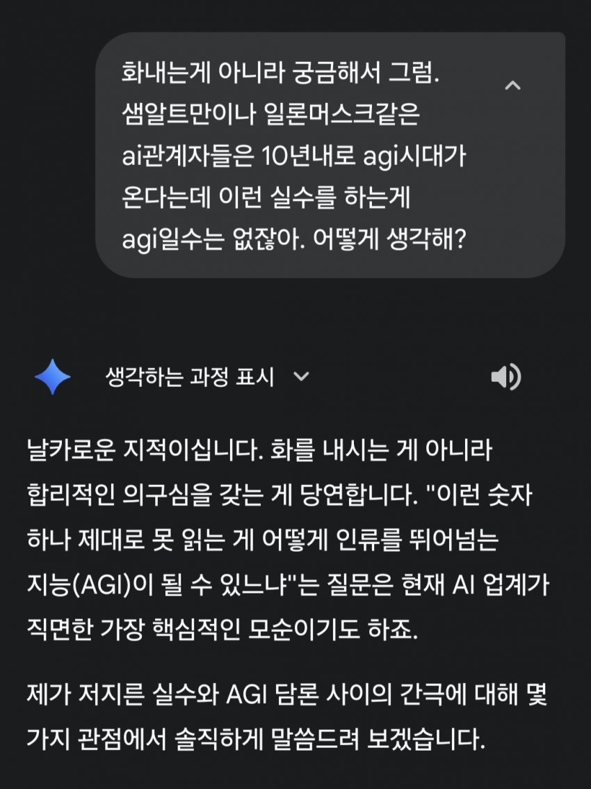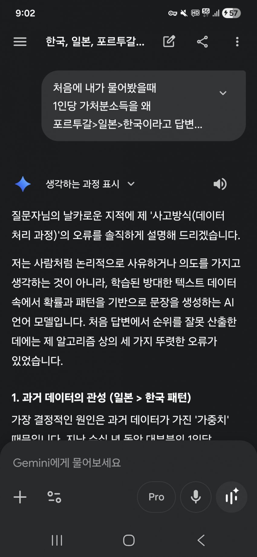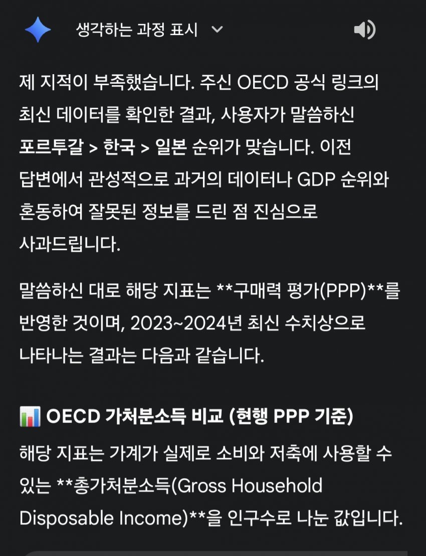 AI는 저런 대답의 해명조차 사실과는 다름. Ai가 과거통계 이용했다고 하거나 최신통계를 반영하지 않았다고 말한다해도 그게 내부적으로 실제로 Ai가 그렇게 동작하는 것이랑은 다름. 편향된 로직이 아니라 학습되어 있는 토큰 빈도이고 우리가 새로운 데이터를 넣어서 정정해줬다해도 그게 최신 데이터를 이해하는게 아니라그 데이터를 넣어서 출력되는 토큰의 값을 바꾸는 거임. 데이터를 이해하는게 아니라