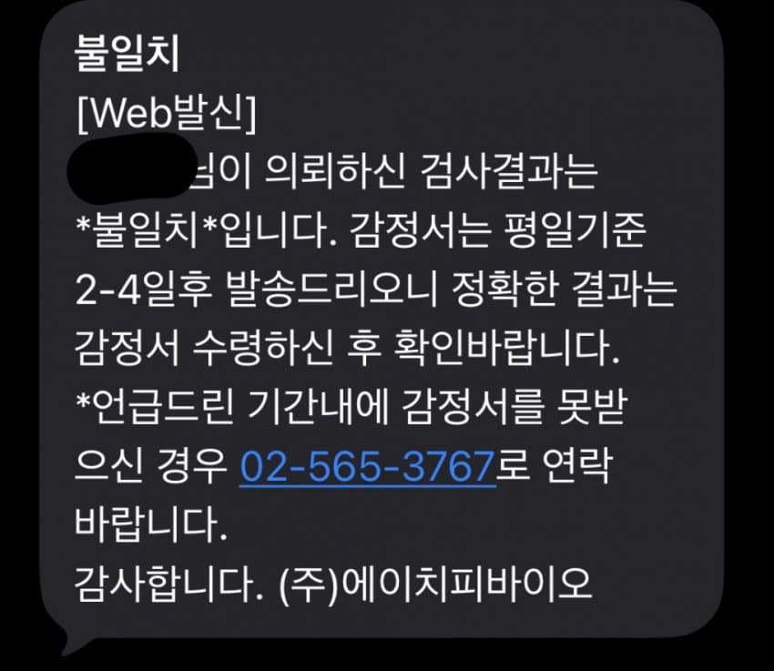검사받고 일주일만에 불일치 연락옴 ㅇㅇ