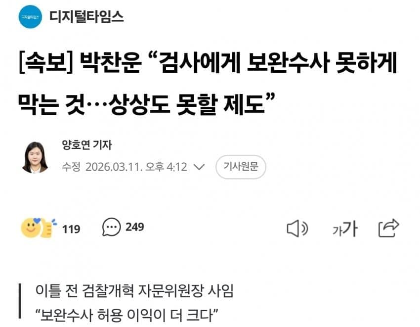 저 글 전문 읽어봐 마지막 4가지 예시로 보완수사권 왜 필요한지 설득시 써먹을 수 있음