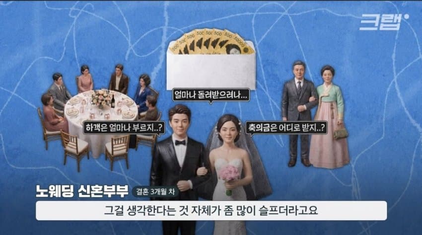 스몰웨딩 이런거 할바엔 그냥 공장식 웨딩함그냥 정해진 일정에 맞춰서 따라다니기만 하면됨글고 식대 호텔급으로 비싼곳만 아니면 축의금 남음아예 안하고 혼인신고만 하면 아직까진 주변에서 입대는 사람이 너무 많음