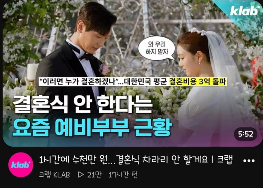 그냥 작게 친한 친구 몇명 가족들 초대해서 축하하고 결혼식 비용 아껴서 혼수하고 해외 유럽 여행가서 쇼핑하고 추억 쌓고 오면 안되는건가.