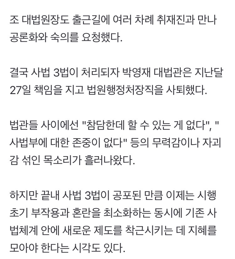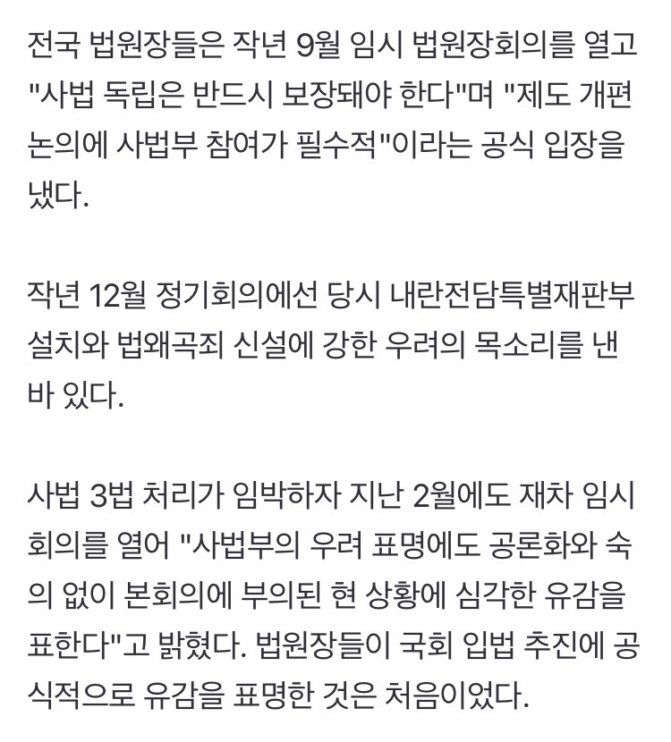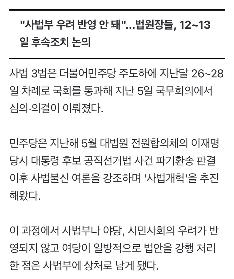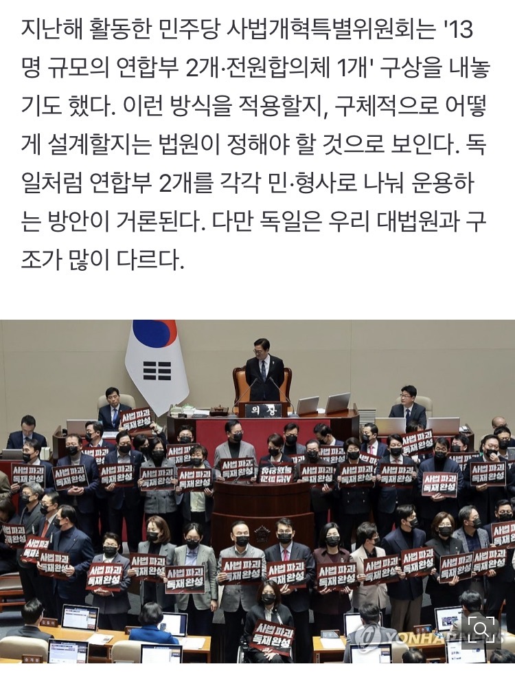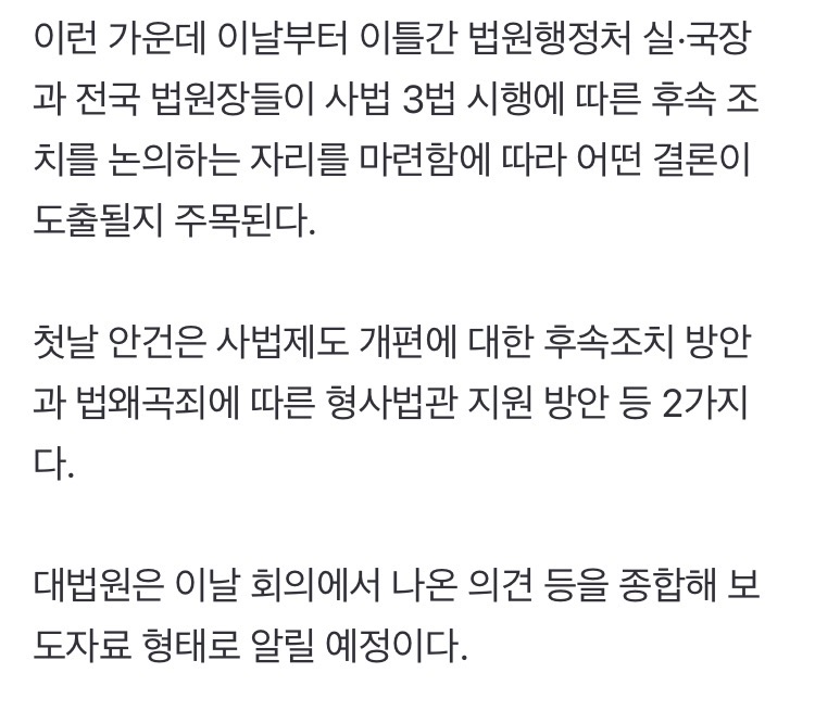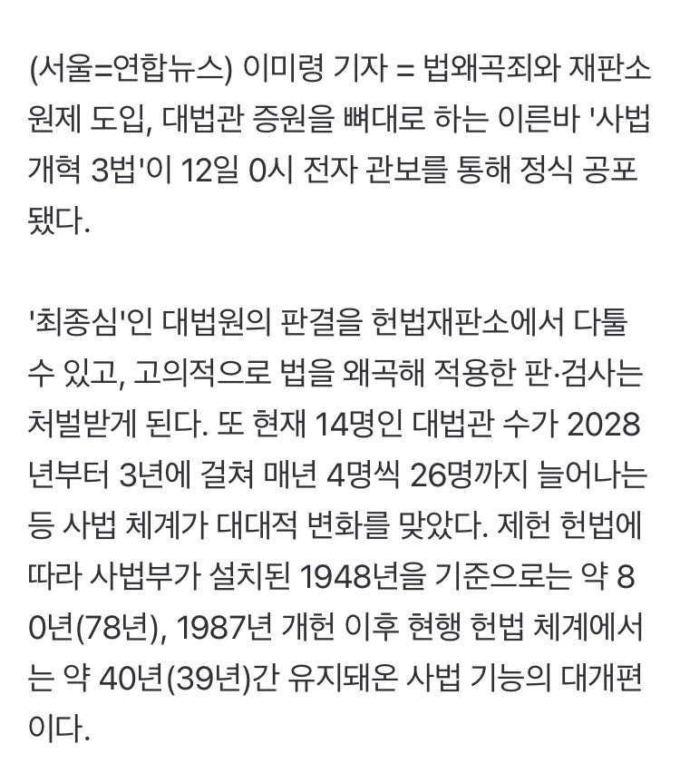 법왜곡죄는 법왜곡죄고 재판소원/대법관 증원 이 둘이 결국 충돌하게 될 것이라 본다 대법관이 적으니까 대법원 판결이 잘못된 것처럼 보일테고 2027년 재판소원 부작용 2030년 26명 되는 시점에 그 부작용이 줄어들것처럼 보임
