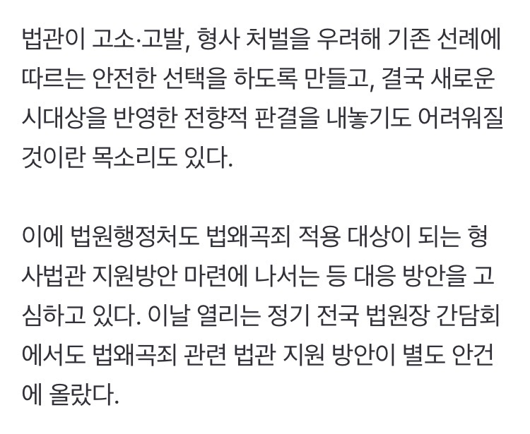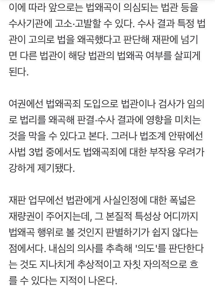 위헌법률심판 빨리해라. 법왜곡죄는 명확성이 없어 대놓고 위헌이던데. 중국 법왜곡죄가 더 구체적이고 명확하노