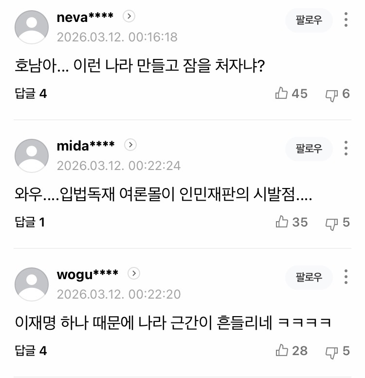 이재명 무죄법 만들고 80년간 유죄된 사법체계 그대로 놔두자는 의견도 있더라. 국민피해가 너무커