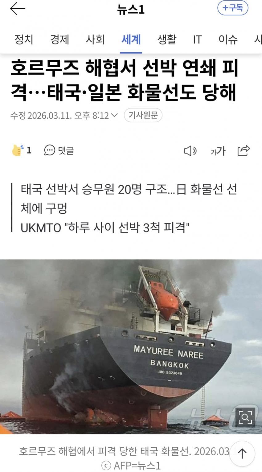 태국 화물선이 대포 쐈냐.쳐맞았으면 피격이지 포격이노.제목 꼬라지 하고는