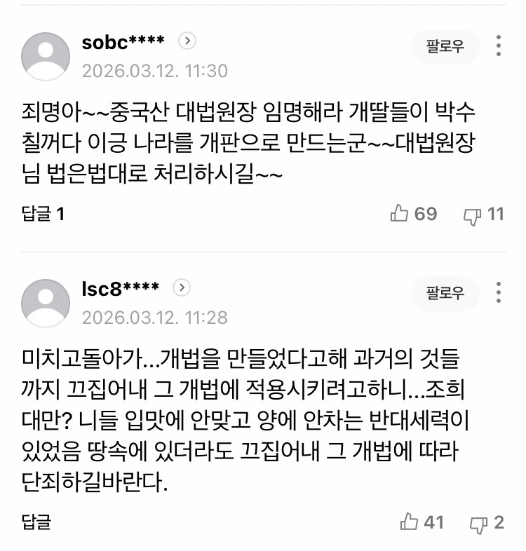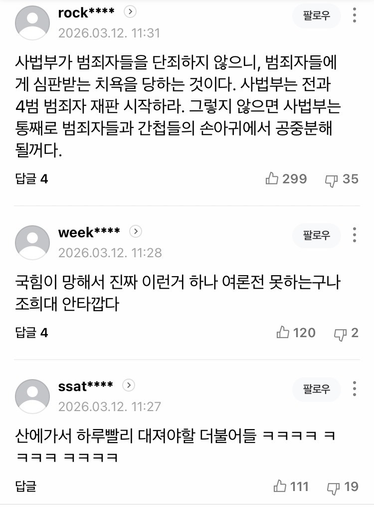 이재명 <- 판사들은 삼권분립 존중이고 뭐고 그냥 힘으로 찍어누르면 실시간으로 조져지는데도 아무것도 못하는 나약한 집단이라는 걸 보여줌 누구보다도 판사 다루는 법을 잘 보여준 선례로 남을 듯 ㅋㅋ