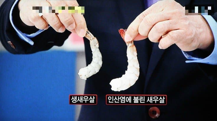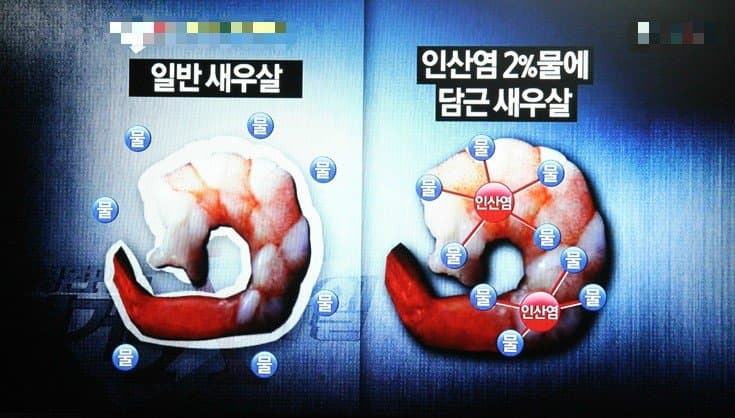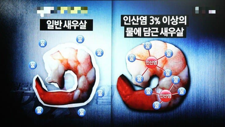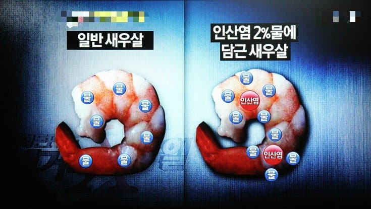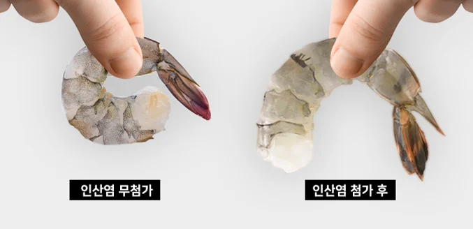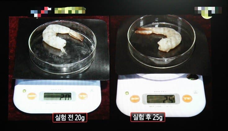 높은 농도의 인산염물에 장시간 담궈두면 새우살의 부피가 늘어나는데