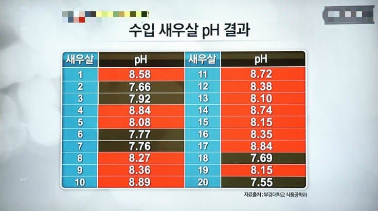 현재까지도 한국에는 새우살에 대한 인산염 첨가 허용량 기준이 존재하지 않는다.