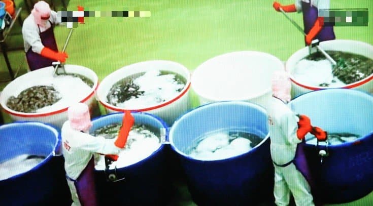 대부분이 한국으로 수출되는 한 태국의 새우살 공장. 새우살을 인산염에 담궈 토실토실하게 만들고 있다.