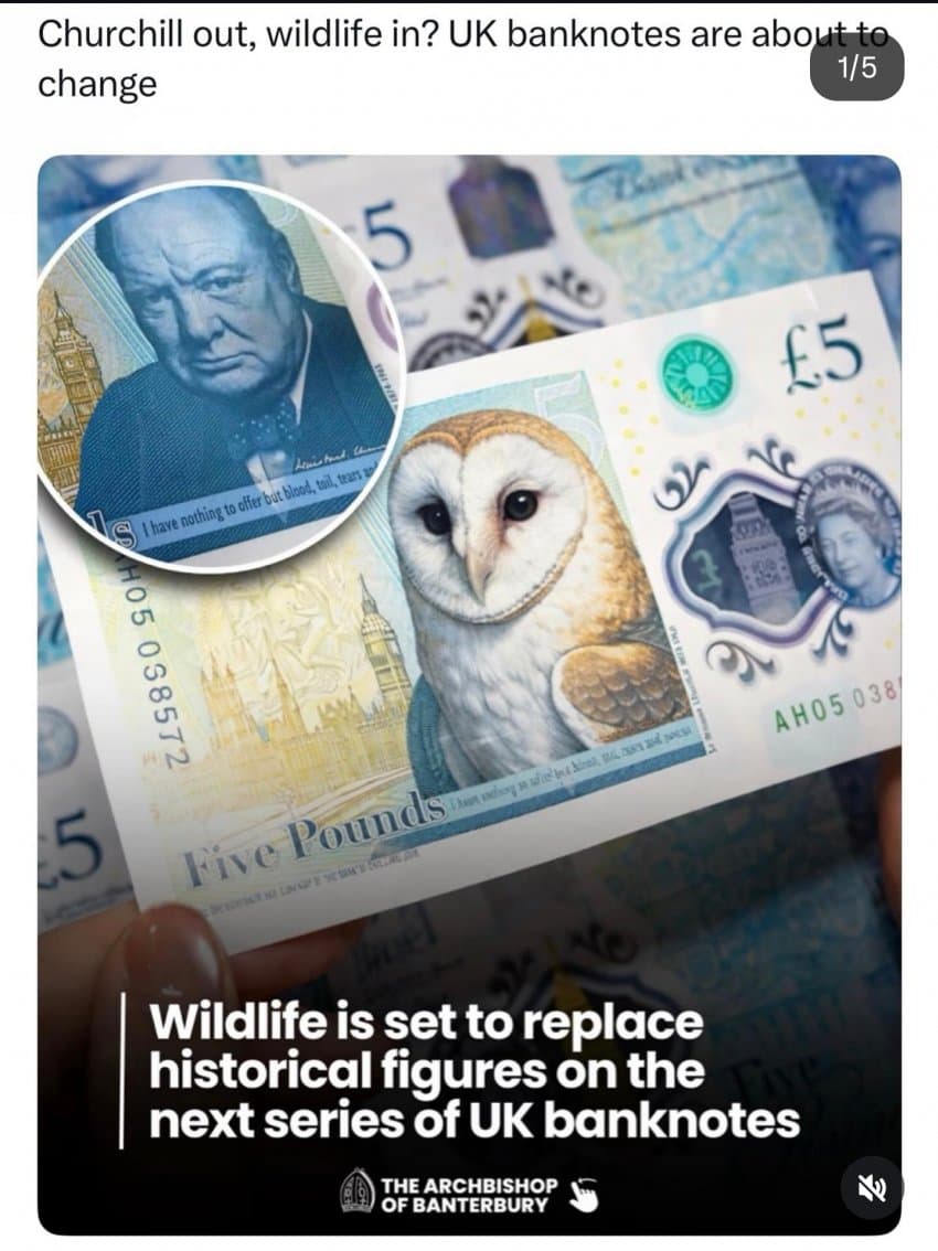 윈스턴 처칠을 비롯한 기존 지폐에 있던 영국 위인들을 전부 제거하고