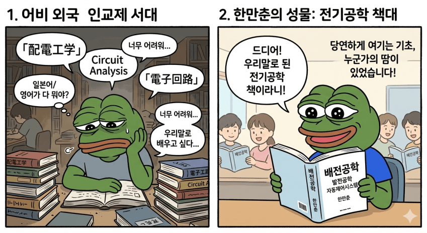 전기 공학 용어 전부 일본식 한자어 그대로 음차한건데. 업적으로 좀 미묘하지 않냐? 외국어 번역할때 새로운 개념을 한자어로 만드는 사람들은 대단한데. 일본에서 만든거 한자 그대로 가져다 쓴건데