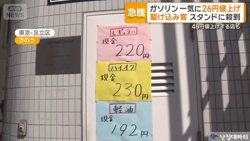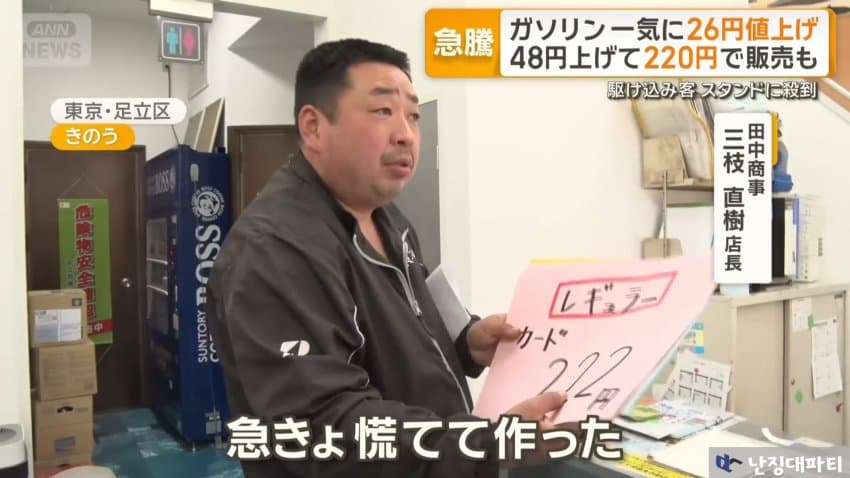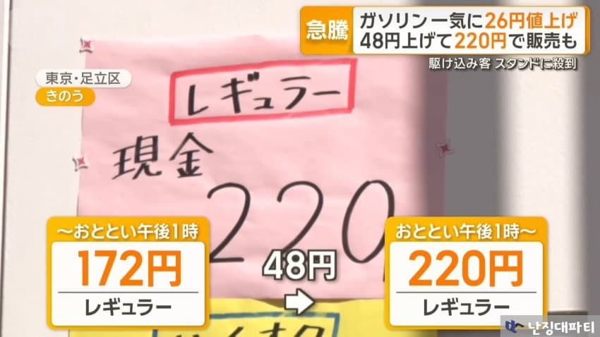 여튼 이 주유소도 11일 오후 1시까지만 해도 172엔에 기름을 팔고 있었는데