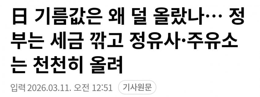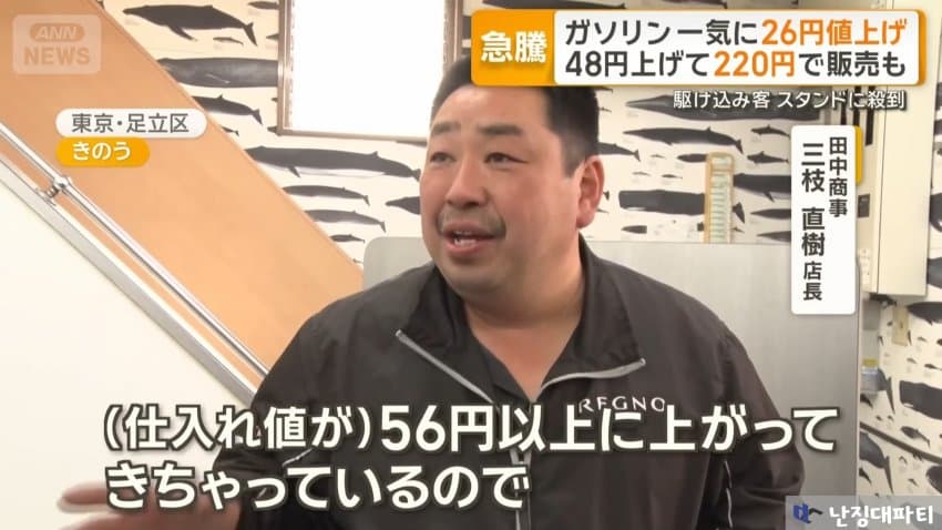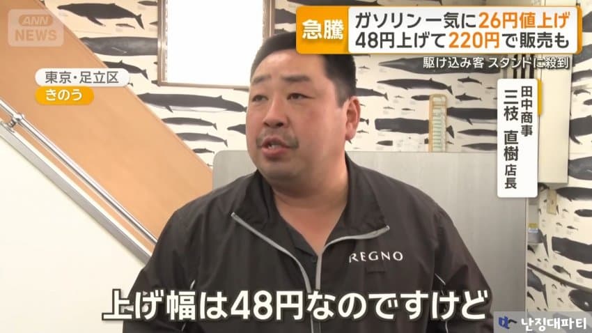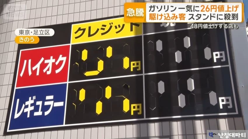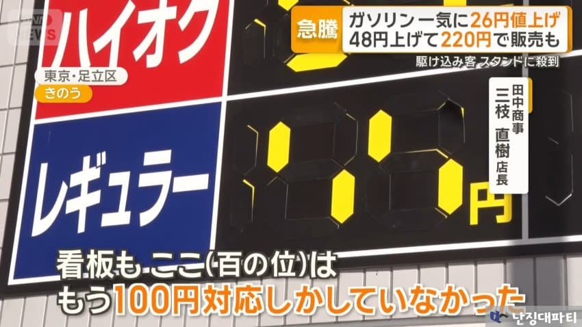한국하고 달리 기름값이 너무 저렴해서 행복하다던 일본
