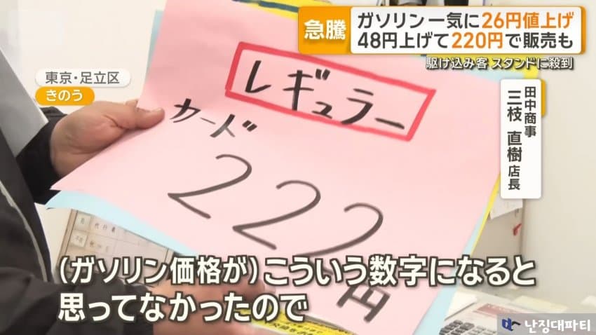 쪽카이치 정부는 가솔린 보조금 재원으로 연료가격대책 기금 약 2800억엔을 사용해 유가 안정화를 시키겠다며 뒷북 대응중이라고 함