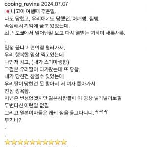 해외여행은 원래 즐거워야 할 일인데, 편의점 같은 장소에서도 이런 악의적인 공격을 당할 수 있다니 예상하지 못한 일입니다. 일본으로 여행 가시는 분들은 정말 경계를 높이고, 이런 눈빛이 좋지 않거나 일부러 가까이 다가오는 사람을 만나면 반드시 피하시기 바랍니다.