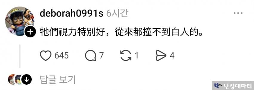 쪽발이들은 시력이 특히 좋아서, 백인에게는 절대 부딪히지 않는다.
