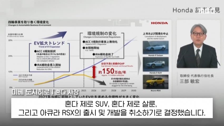 현대차 25년 영업이익 20조원, 혼다 25년 적자 6조5천억원 26년 예상치 최대 23조 적자 ㅋㅋㅋ