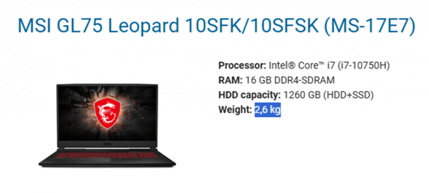 노트북 무게: 2,600g