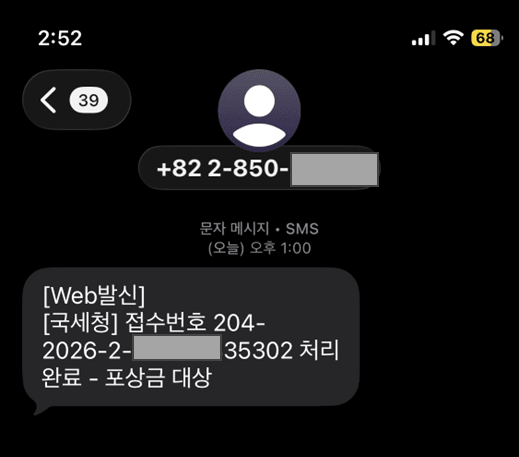 그리고 한 일주일쯤 지났나? 오늘 아침에 문자 한통을 받음 ㅋㅋ