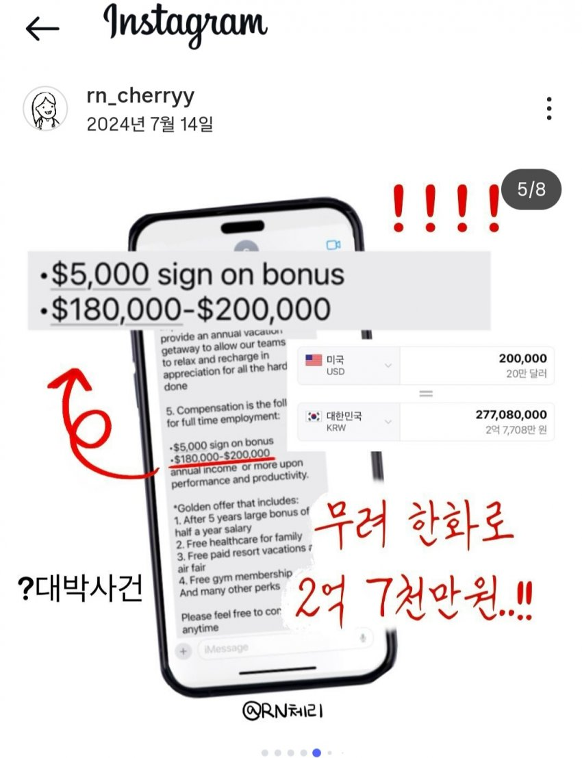 간호사 연봉 2억 의사 연봉 10억 이러니깐 미국에서 가난한 사람들은 의료시설 못 사용하고 중상층도 부담 느껴서 병원 못 가고 하다가 고통 버틸려고 마약 손 대고 이게 악순환임, 누군가의 연봉이 높으면 누군가가 죽어야 하는 거여. 마냥 좋게 보지마라 우리나라도 간호사 연봉 10억씩 주고 의사 연봉 20억씩 주고 하면 누가 피해보겠다? 시민들 병원 못 가고 수술도 못받고 죽는다. 병원 가면 기본이 1000만원, 수술 기본 1억 이렇게 하는데 월급은 250만원 받고 이게 사람 사는거냐?
