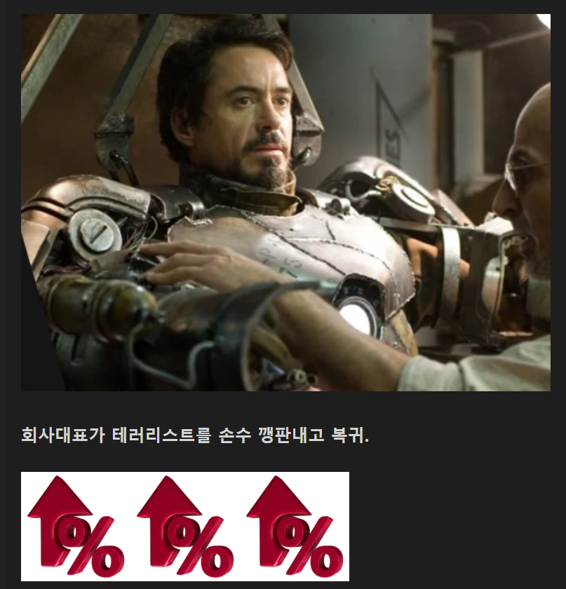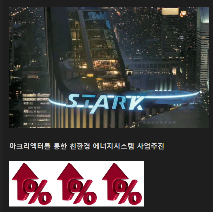 지금 방산이랑, 에너지, ai랑 로봇인기니까 스타크 혼자 다했노 ㅋㅋㅋ 조선도 용접하는거보니 잘하겠네