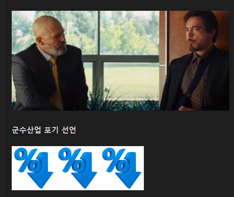 주가 ㅈㄴ 쳐 망해도 이미 전세계 최상위 부자인데 뭐 ㅋㅋ여차하면 하우스 파티 프로토콜 + 인공지능 자비스(자매품들) 상용화해서 ㅈ부자들한테아이언맨 엔트리 슈트들만 한대씩 n억 달러에 팔아도 주가 회복이 아니라지금 가진 주가와 재산 n배 뻥튀기도 가능이지 그걸 방위 산업체로도 돌린다?일론 머스크는 ㅈ거지 취급시킬 수도 있음 ㅋㅋ 동맹국가에 5대 미만으로 팔아먹어도 ㅋㅋ