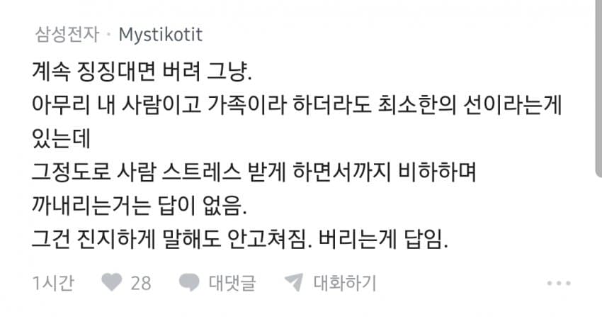 봐주고 받아주니까 맨날 블라와서 징징대지