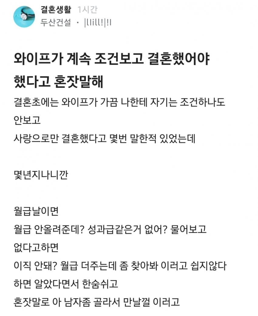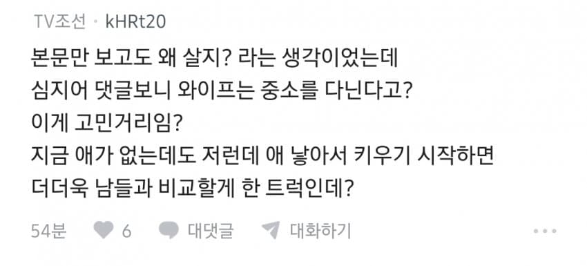 그성별의 관점:와 무직 취집도 아니고 맞벌이해주는데