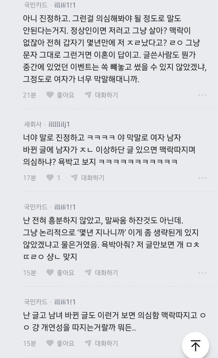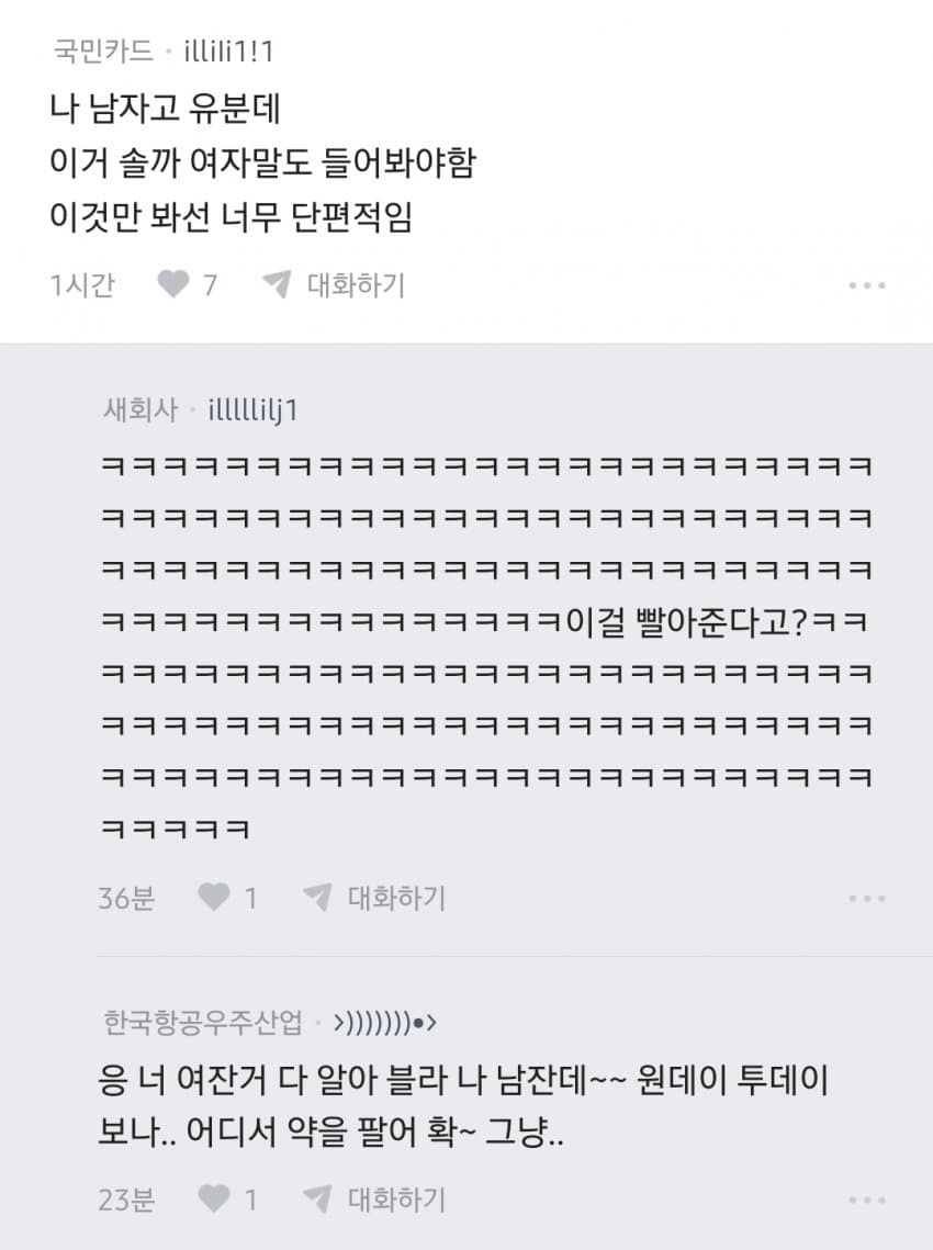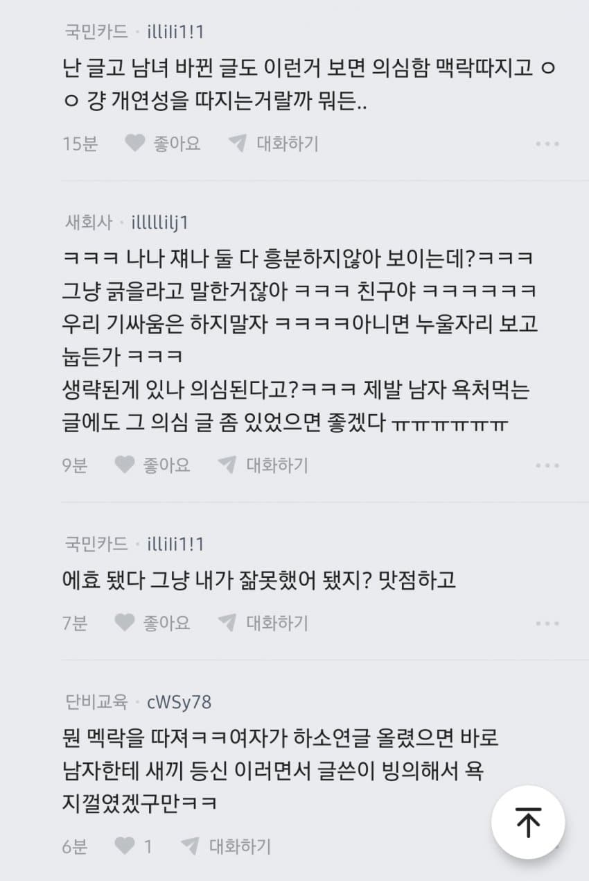 남자가 똑같이 저지랄비슷하게했으면 즉시 쌍욕날리고 MZ거렸을 세대들이