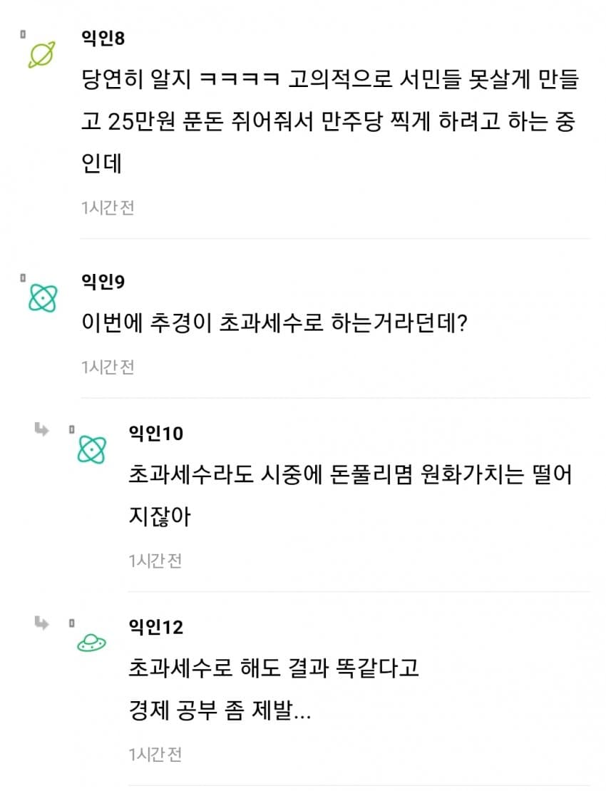 이번 추경안 자체만 보면 세입액이 세출액보다 많은 흑자재정임 통화량을 늘리는게 아니고 줄이는거야..그 지원금으로 R&D 투자같은 미래를 위한 투자를 해야한다는 비판은 이해가지만 통화량을 늘린다는건 팩트가 아니야 얘들아.