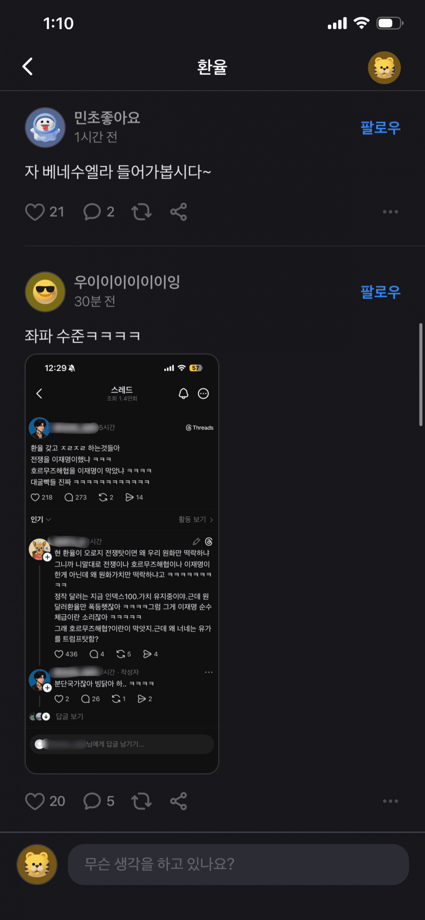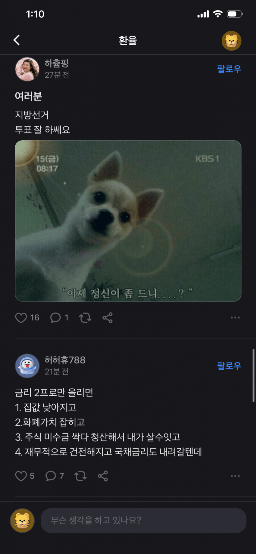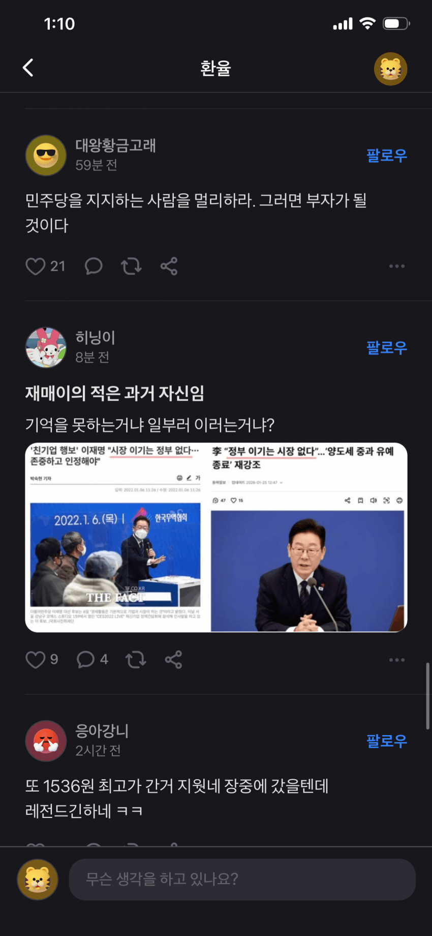 난 무조건 이재명 및 민주당 뽑을거임 자꾸 내란견들이 지랄하는데 어차피 내란당이 집권했어도 트럼프 전쟁으로 인한 환율급등은 못막았음 내란당보단나음