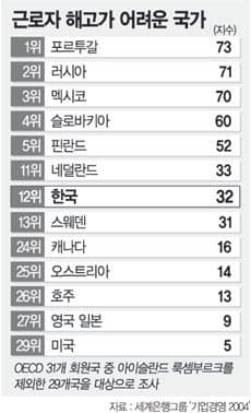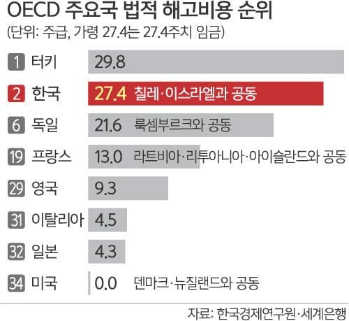 한국은 해고가 매우어려운 나라이다 법적해고비용이 OECD 2위이며 좆소포함하고도 해고난이도 상위권이다 대기업 정규직은 더더욱 어렵다는뜻