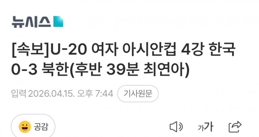 와.. ㅋㅋ 이젠 여자축구 북한한테도 지네
