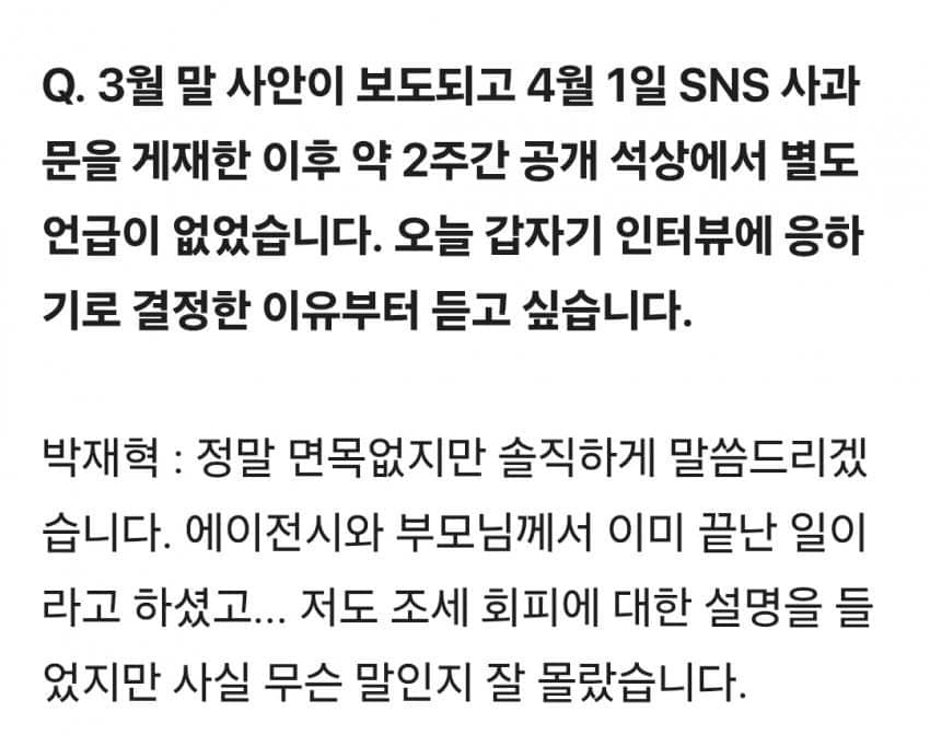 에이전시와 부모님께서 이미 끝난 일이라고 하셨고 저도 조세회피에대한 설명을 들었지만 사실 무슨 말인지잘 몰랐습니다 라고 했음