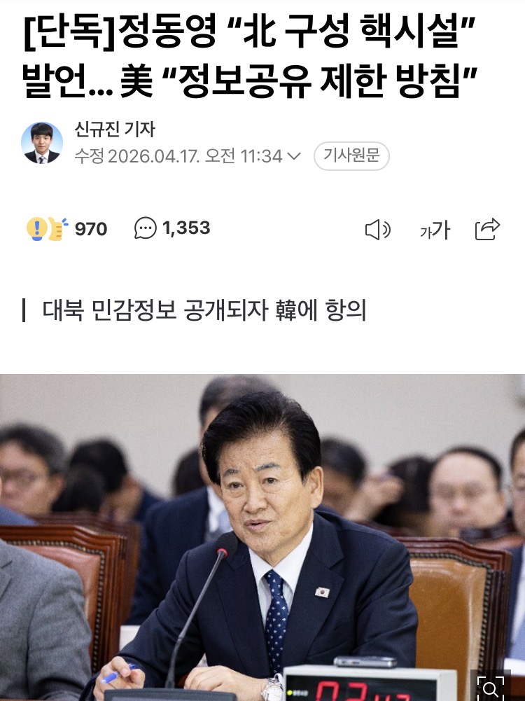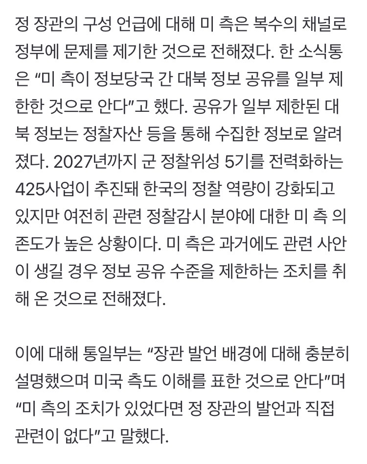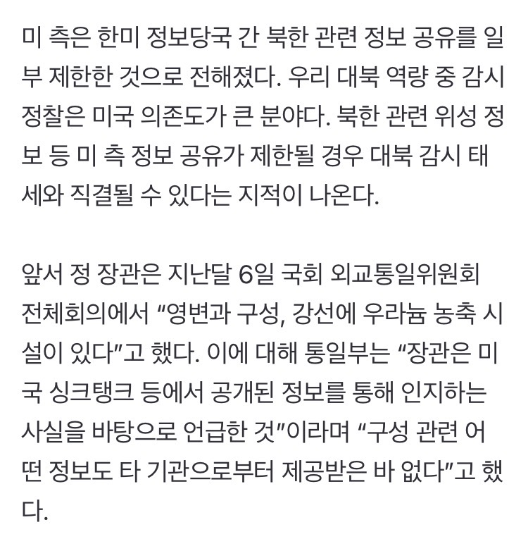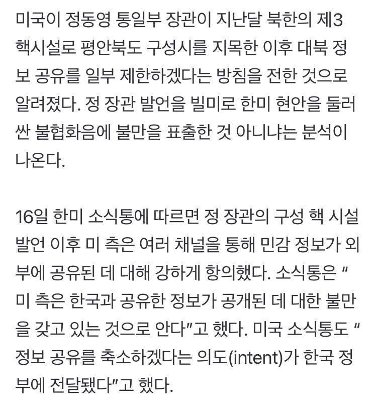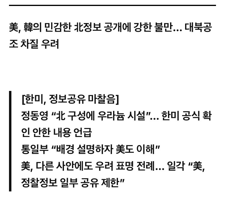 미국 “한국이 북 정보 발설, 이젠 정보 안 준다”