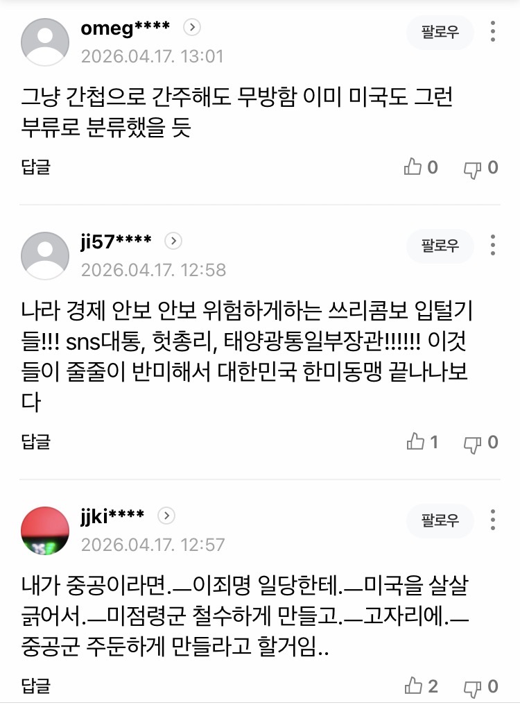미국의 신뢰도를 찢었네 아주... ㅆㅂ 이적행위로 처벌해야 되지 않음?