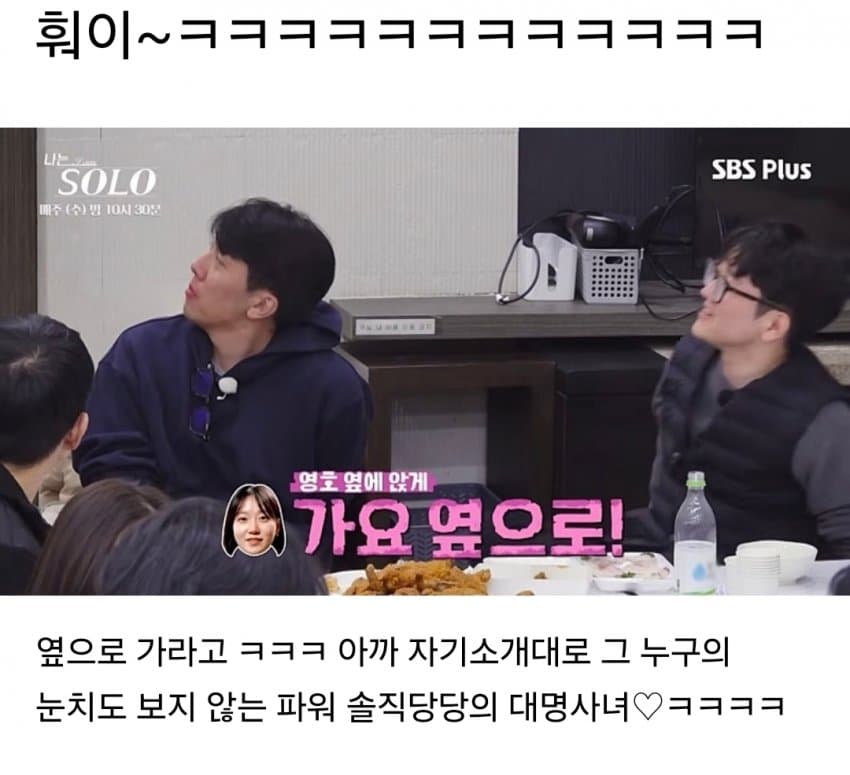 혼자 통닭 4마리 본인앞에만 두고 사수하는거보고 엄청난 식탐녀옆에서 영식이 통닭먹으니 노려보고 지랄났던데