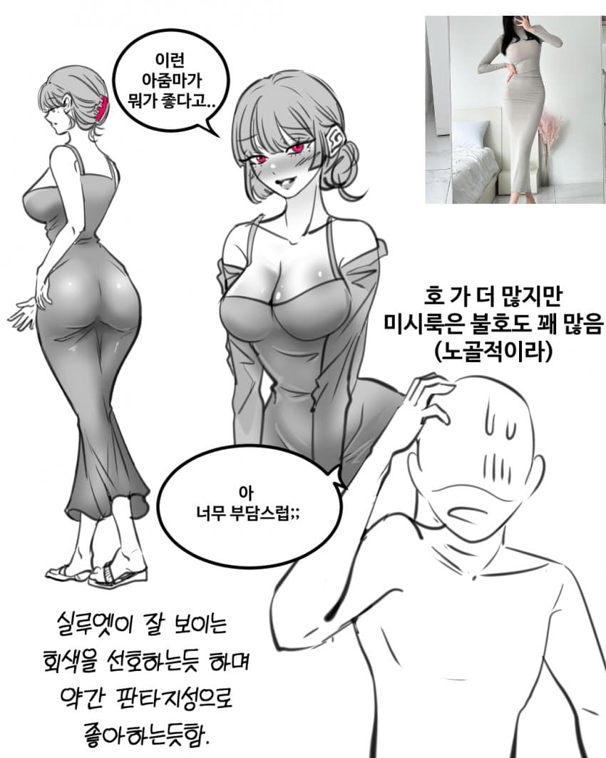 남자들이 여자옷에 대한 디테일한 지식이 없어서 다들 비슷한 옷들 그려달라고 할거 같음