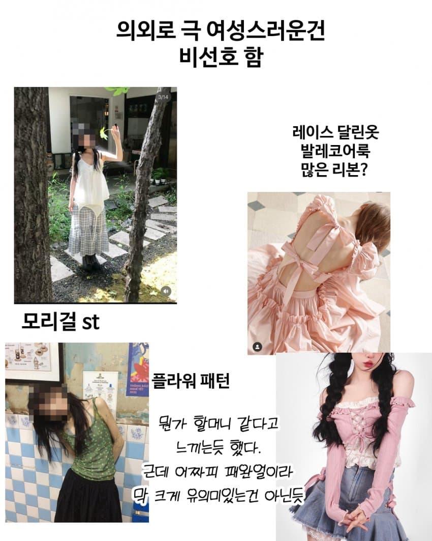 뭔 개소리야... 저딴게 인기 있었으면 야동에 저딴 옷이 나왔겠지현실은 간호사, OL, 스튜어디스, 메이드, 교복 이런 제복이나 코스프레가 메이저고버튜버들도 죄다 애니에서 나올법한 하늘하늘한 옷입는데뭔 남자가 현실에서 볼법한 백수룩을 좋아하니 스포티한 옷을 좋아하니 미시룩을 좋아하니 지랄은 ㅋㅋ저런 펑퍼짐한건 딱 몸매 자신없는 찐따계집들이 좋아하는 옷이구만 상상의 나래를 펼쳐놨네