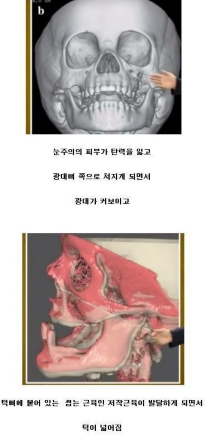 살쪄서 지방 끼어 얼굴 커진 거랑 별개로 얼굴 골격이 커진다는 거냐? 얼굴 근육이 늘어진다는 거냐?