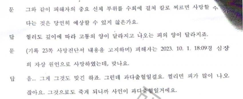 심장 쪽 자상으로 사망 ㄷㄷ